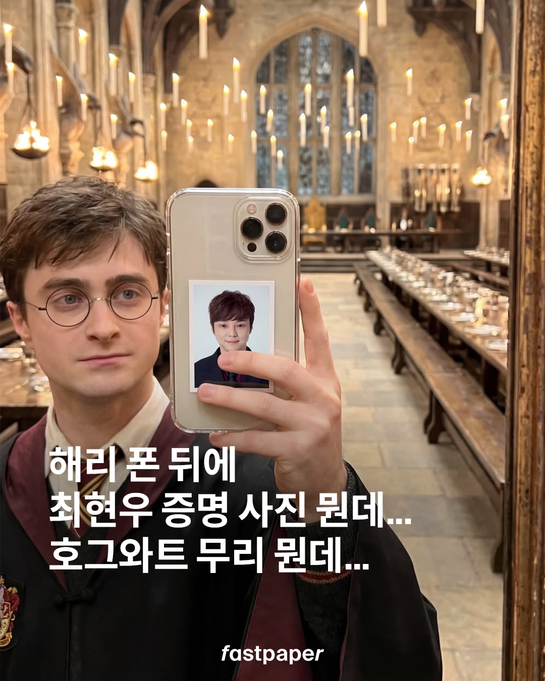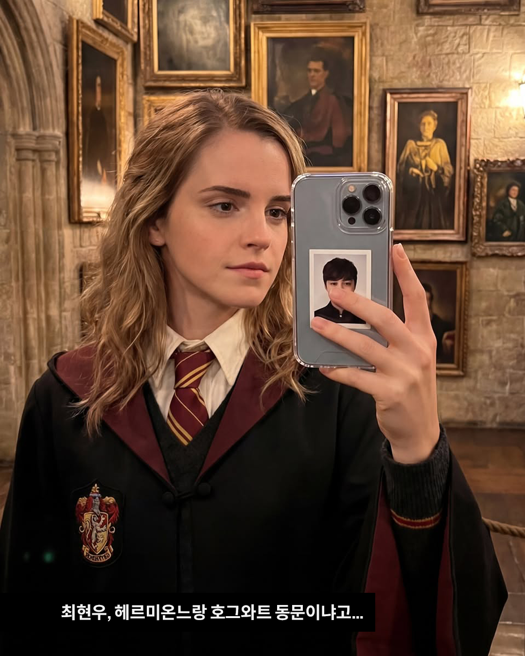 호그와트 동문 의리 좋네요(?) 마술사 최현우가 인스타그램에 업로드한 이 사진! 해리 포터와 헤르미온느의 거울 셀피에 최현우의 증명 사진이 등장했습니다. 해당 사진은 사실 요즘 유행 중인 ‘최애 폰 뒤에 증사 넣기’ 트렌드인데요. 구글 제미나이를 활용해 생성할 수 있죠.
